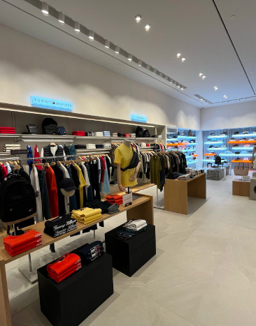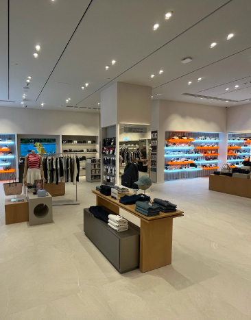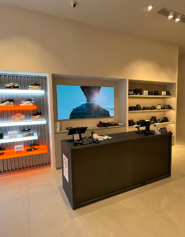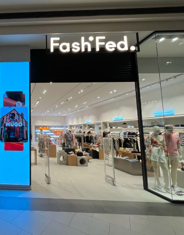 FashFed mağazası, teknolojiyle entegre edilen perakende alan tasarımı, özel üretim raf sistemleri, vitrin aydınlatmaları ve yüksek kaliteli malzeme seçimleriyle sofistike bir perakende iç mimari örneği olarak öne çıkmaktadır.