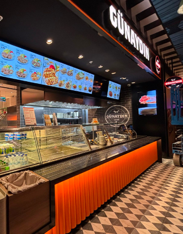 Meydan AVM Günaydın Köfte & Döner şubesi, Gates Decoration’ın restoran iç mimarlığı ve anahtar teslim uygulama konusundaki uzmanlığını yansıtan güçlü bir referans proje olarak öne çıkmaktadır.