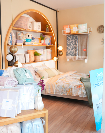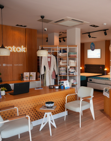Yatak teşhir alanları, tekstil bölümleri ve satış danışma noktaları markanın konfor, sadelik ve güven değerlerini yansıtacak şekilde tasarlandı. Aydınlatma sistemlerinden özel üretim mobilyalara, zemin ve duvar uygulamalarından dekoratif raf düzenlerine kadar tüm detaylar, perakende mağaza tasarımında estetik ve işlevselliği bir araya getiren profesyonel bir yaklaşımla uygulandı.